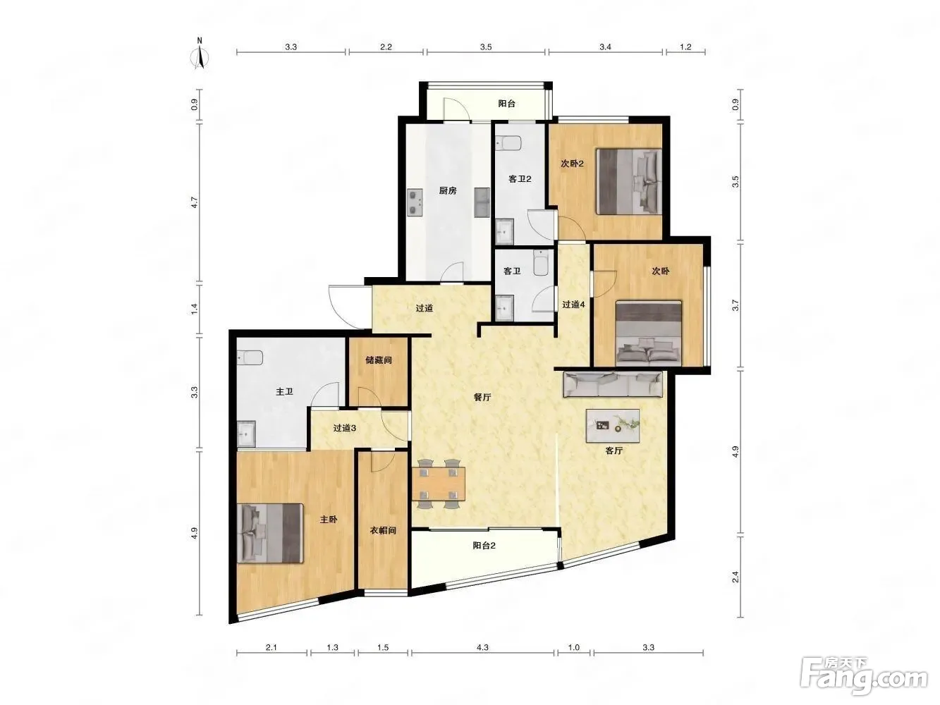 户型齐全,主打客厅朝南,卧室朝南三居
