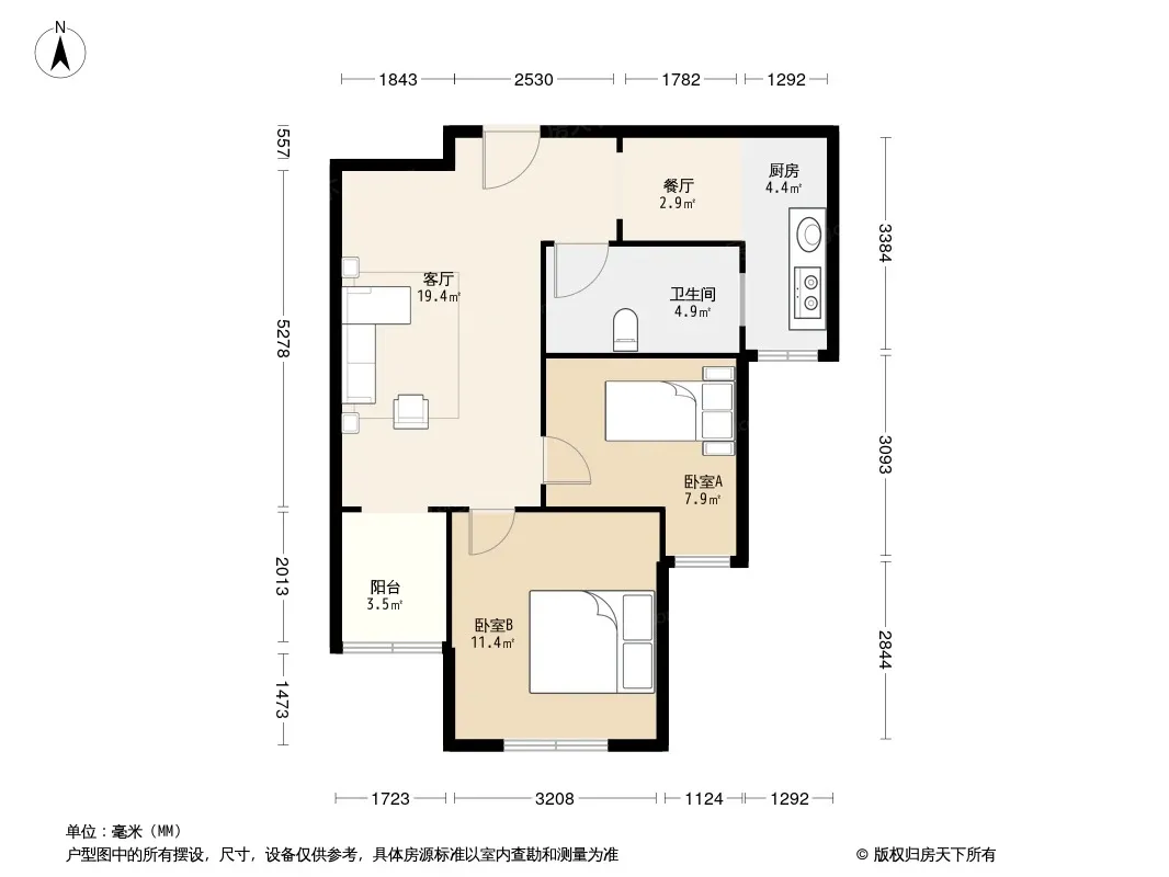 户型齐全,主打户型方正,明厨,明卫,客厅朝南二居