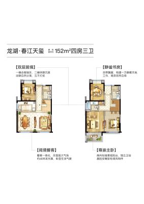 上海龙湖春江天玺户型主要有85平-93平的客厅朝南,卧室朝南的三居 、152平-152平的南北通透,户型方正的四居 。