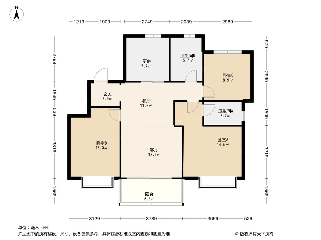 户型齐全,主打全明格局,户型方正三居
