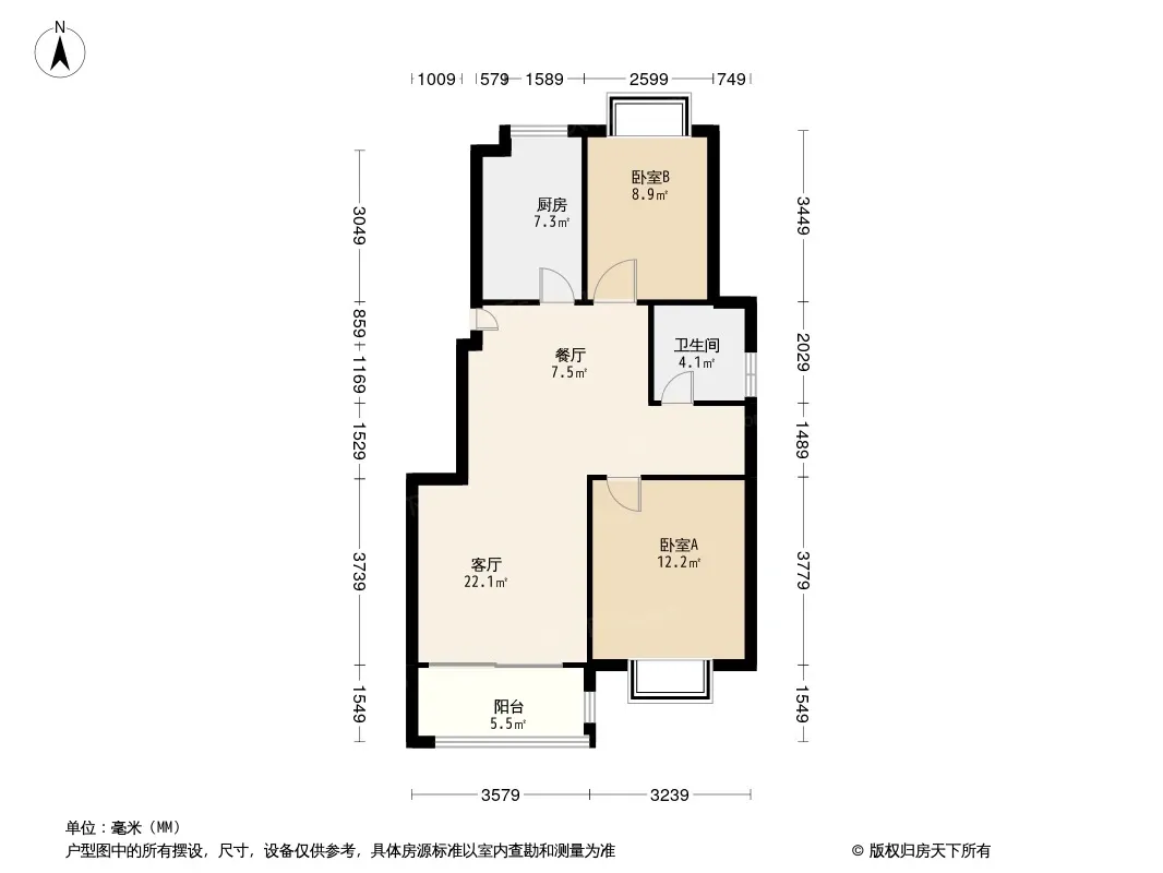 户型齐全,主打南北通透,全明格局,户型方正二居