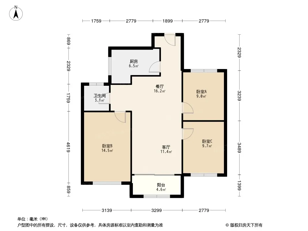 户型齐全,主打客厅朝南,卧室朝南,开放厨房三居