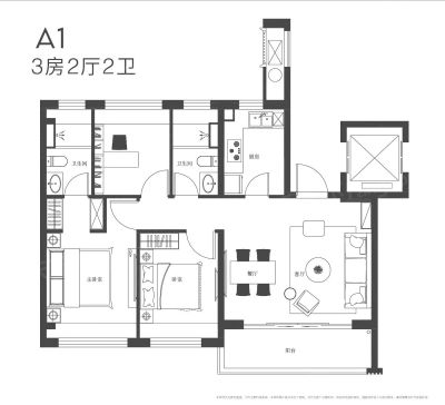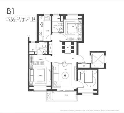 户型齐全,主打户型方正,动静分离三居