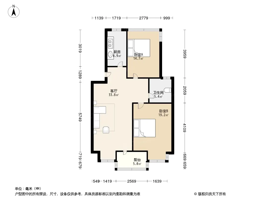 户型齐全,主打户型方正,明卫,明厨,客厅朝南,全明格局,主卧朝南二居