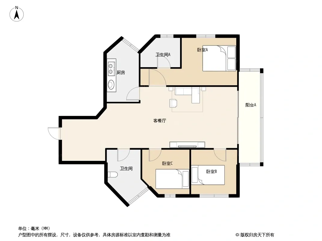 户型齐全,主打全明格局,动静分离三居