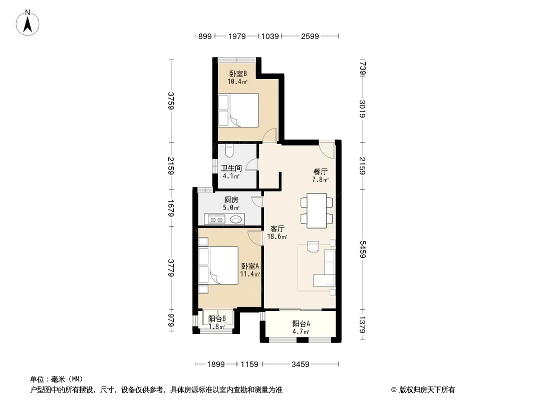 户型齐全,主打户型方正,明卫,客厅朝南,双阳台二居