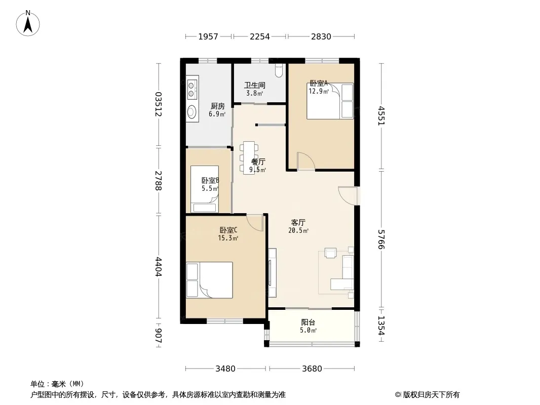 户型齐全,主打户型方正,明卫,明厨,主卧朝南三居