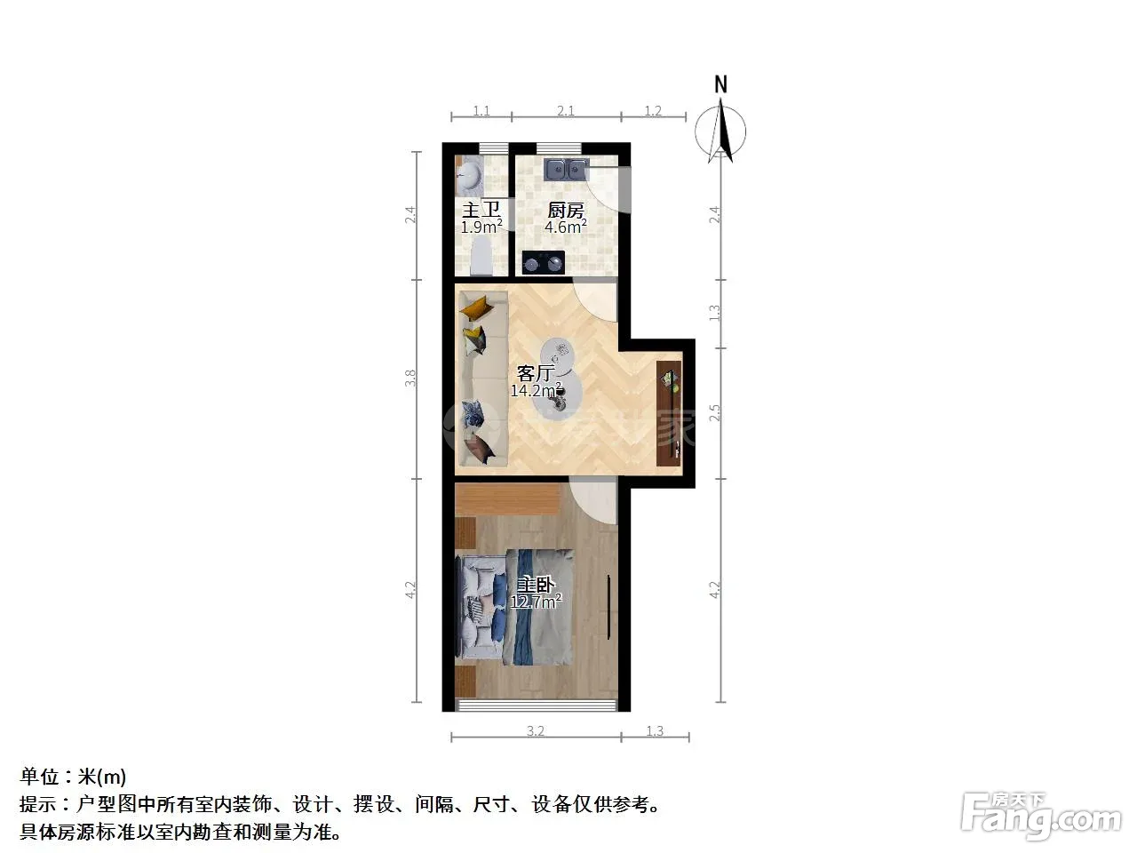 户型齐全,主打户型方正,明厨,明卫,客厅朝南,全明格局,主卧朝南一居