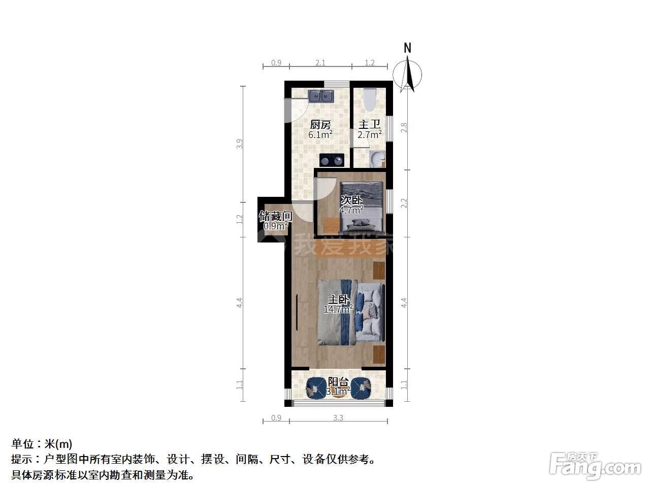 户型齐全,主打户型方正,明卫,明厨,主卧朝南一居