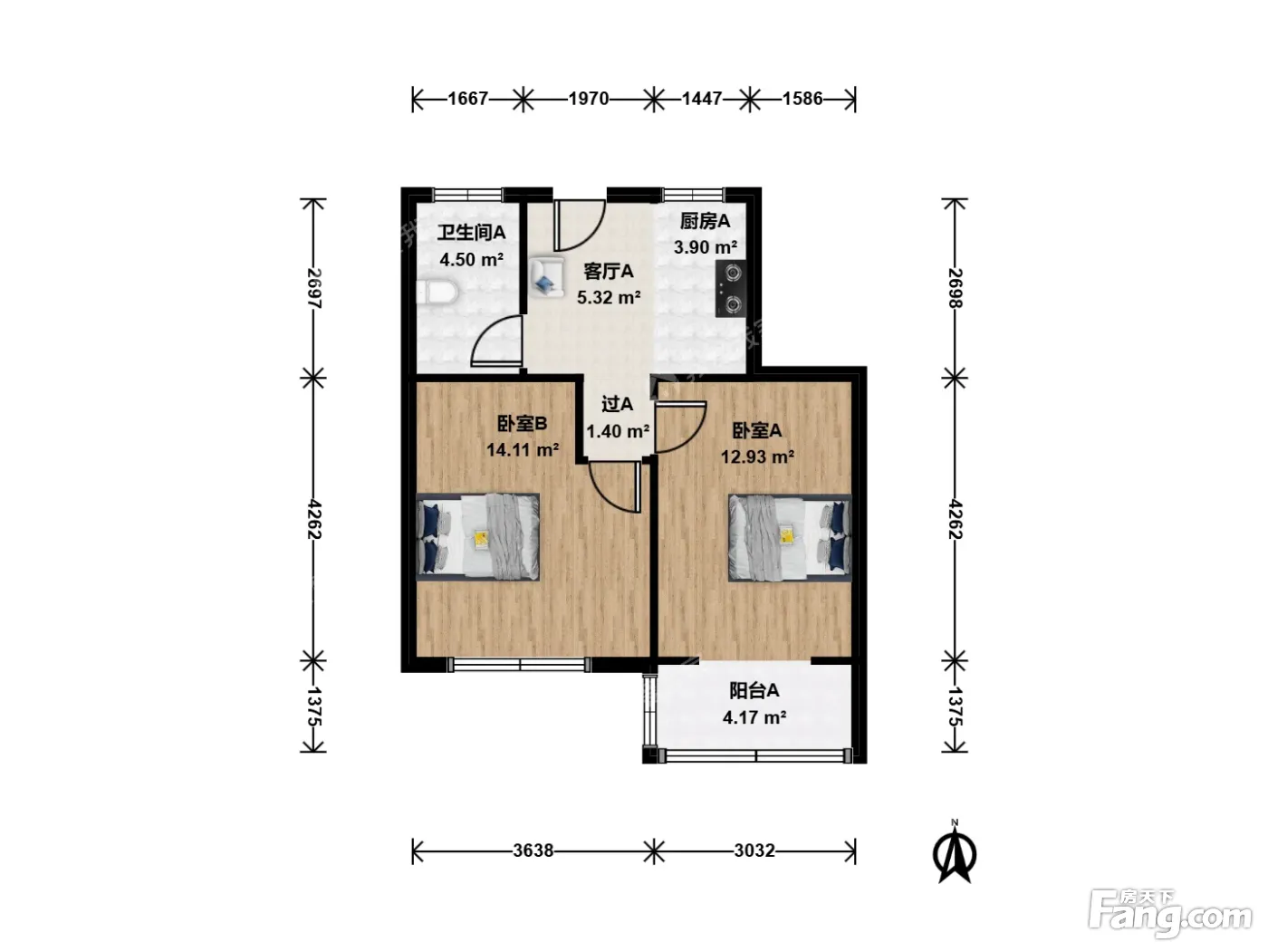 户型齐全,主打明卫,明厨,客厅朝南,全明格局,主卧朝南二居