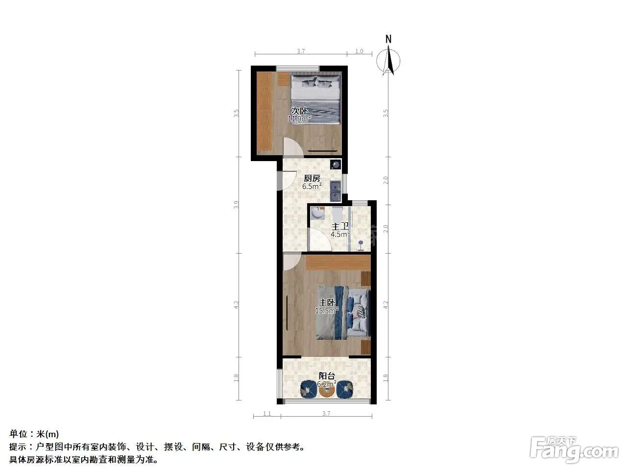 户型齐全,主打明卫,明厨,主卧朝南二居