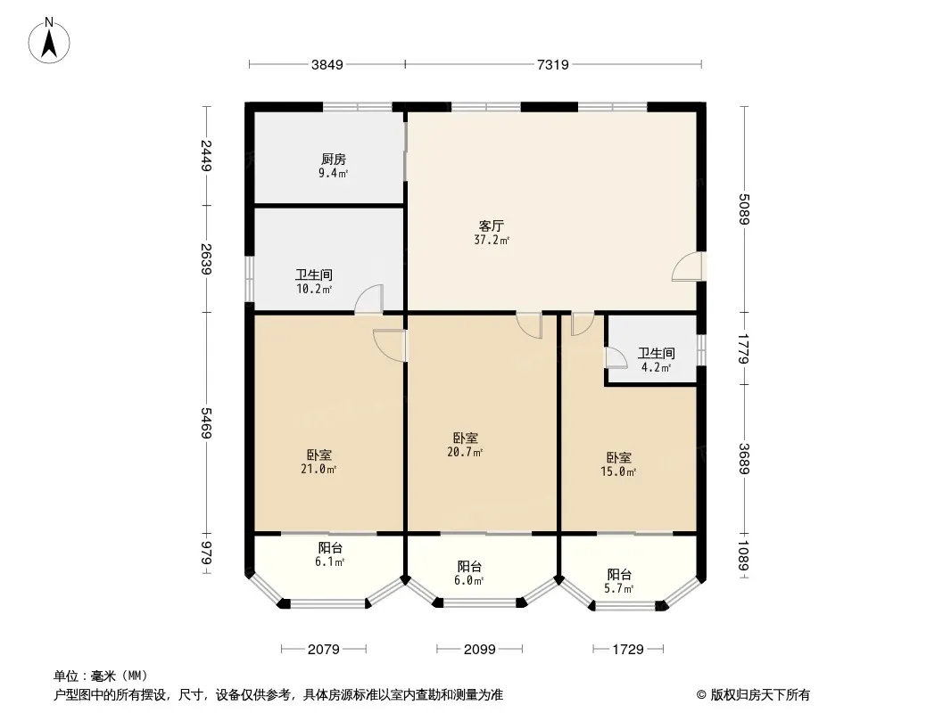 户型齐全,主打户型方正,明卫,明厨,客厅朝南,全明格局三居