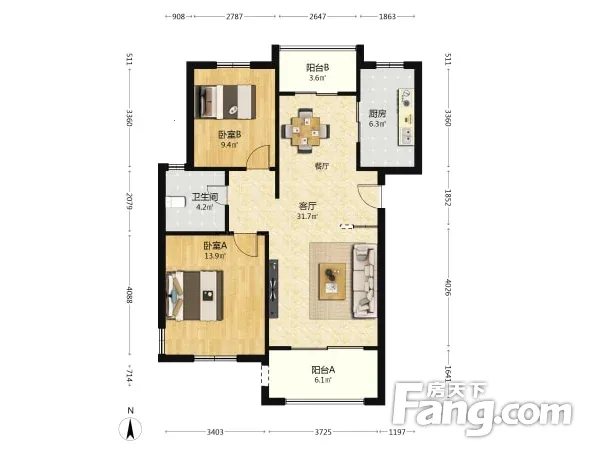 户型齐全,主打户型方正,明卫,明厨,主卧朝南三居
