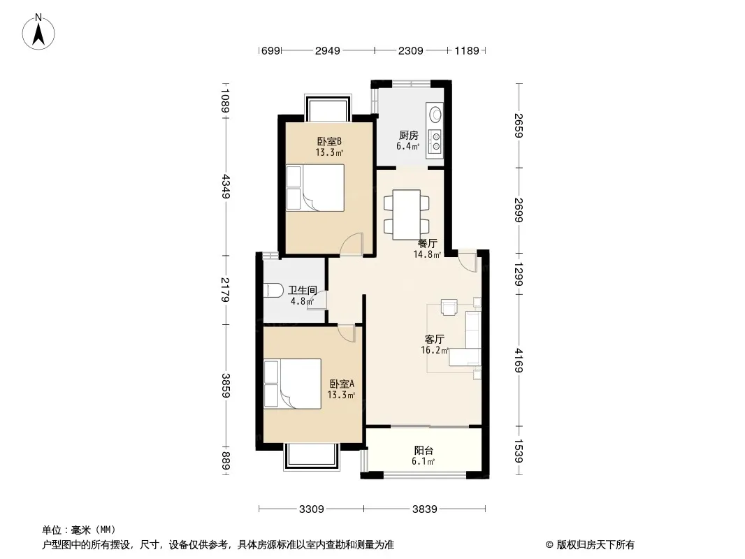 户型齐全,主打户型方正,明卫,明厨三居