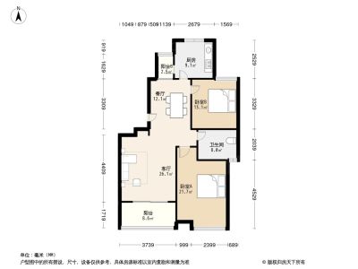 户型介绍:此房户型为2室2厅1卫,建筑面积为97.72平米,主卧朝南,次卧朝北,厨房朝北,卫生间朝南,南北双阳台。