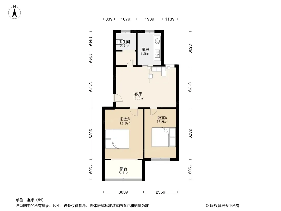 户型齐全,主打户型方正,明卫,明厨,客厅朝南二居