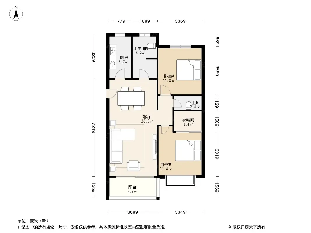 户型齐全,主打户型方正,独立衣帽间,明厨,明卫,主卧朝南二居