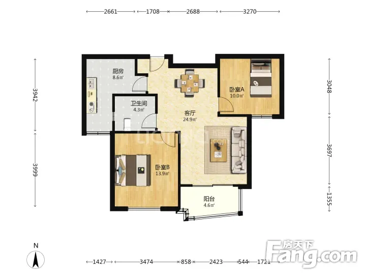 户型齐全,主打户型方正,明厨,明卫,双阳台,主卧朝南二居