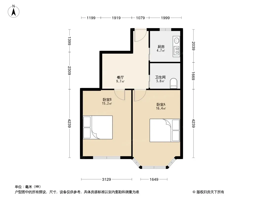 房子是老装修双南户型,带一个小厅,户型好