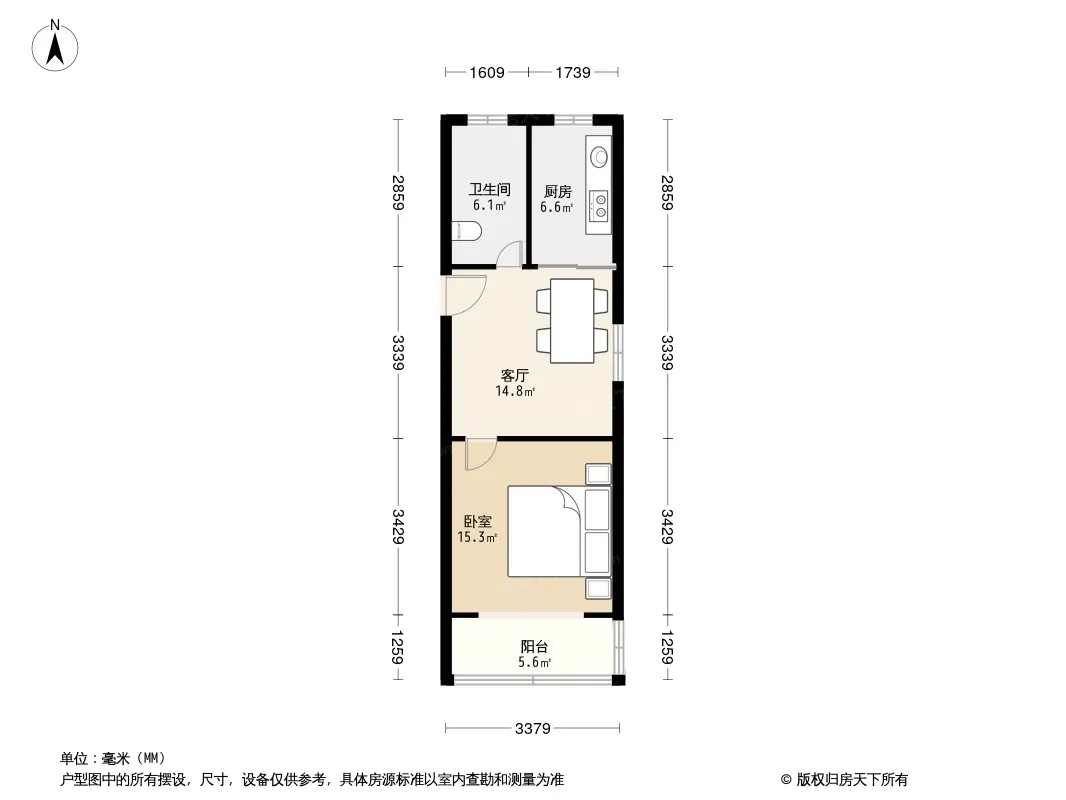 户型齐全,主打户型方正,明卫,明厨,客厅朝南,主卧朝南二居