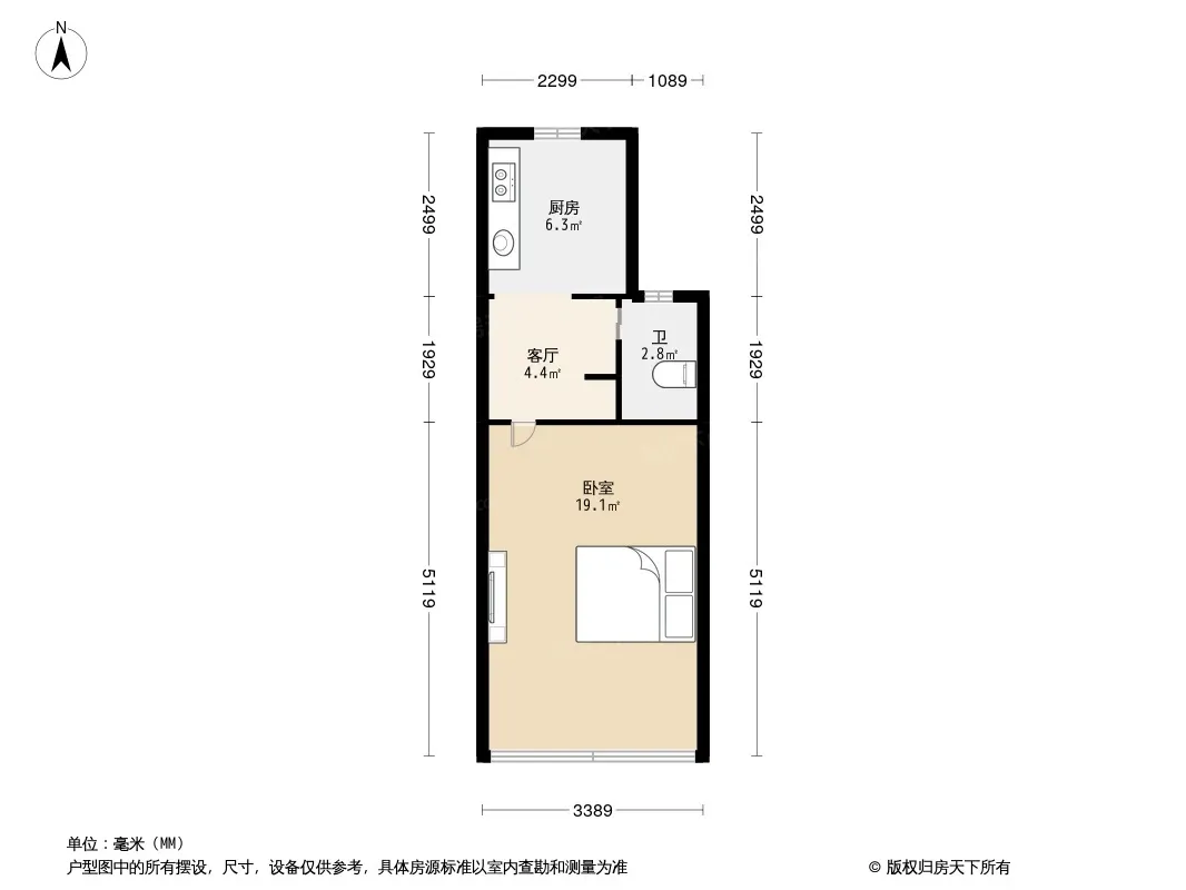 户型齐全,主打户型方正,明厨,主卧朝南二居