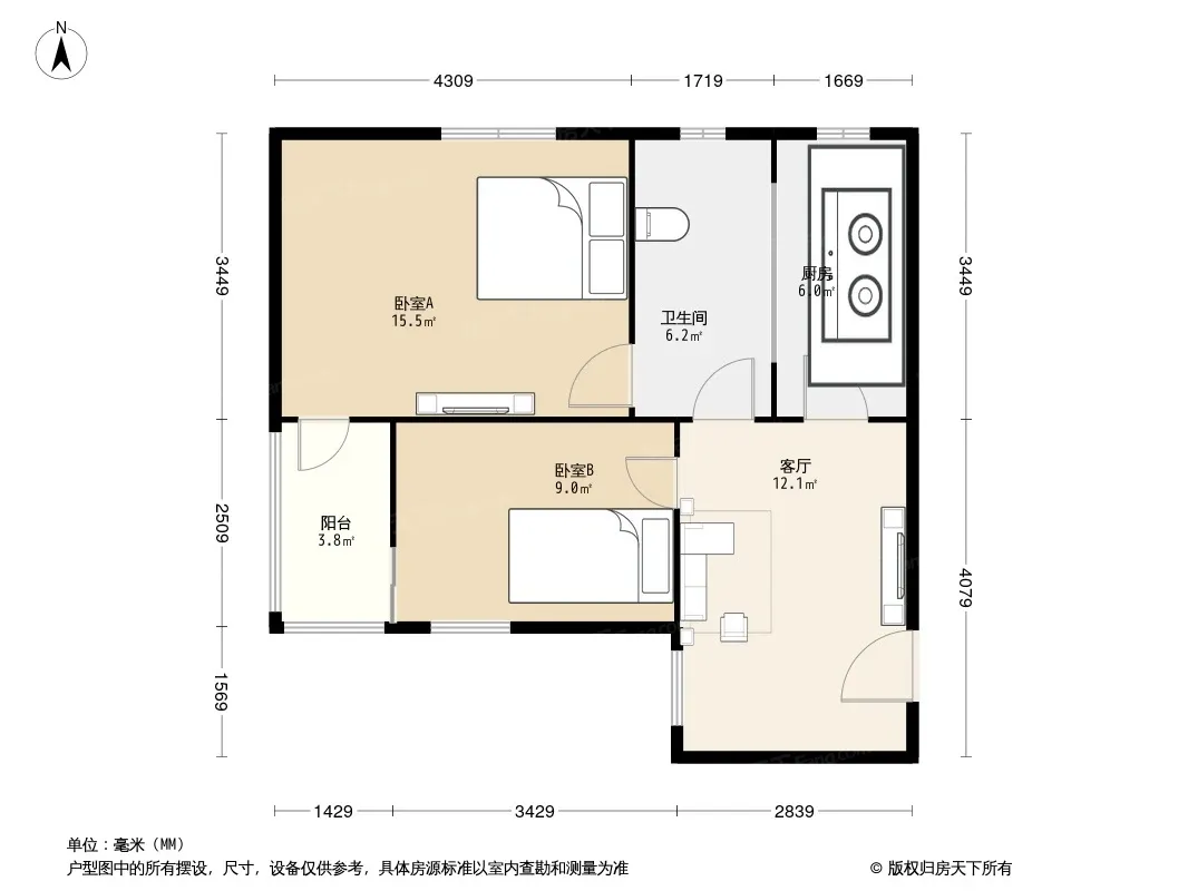户型齐全,主打户型方正,明厨,明卫,主卧朝南二居