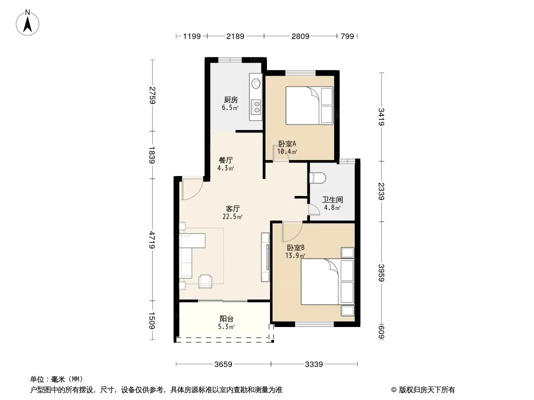 户型齐全,主打户型方正,明厨,明卫,主卧朝南二居