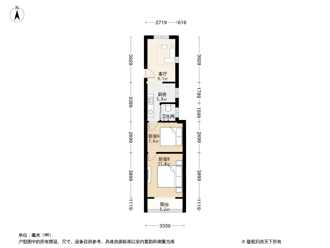 户型齐全,主打户型方正,明厨,明卫,客厅朝南,全明格局二居
