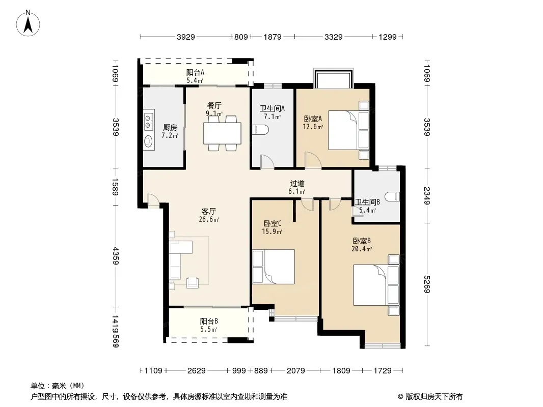 户型齐全,主打户型方正,明卫,明厨,双卧朝南,主卧朝南三居