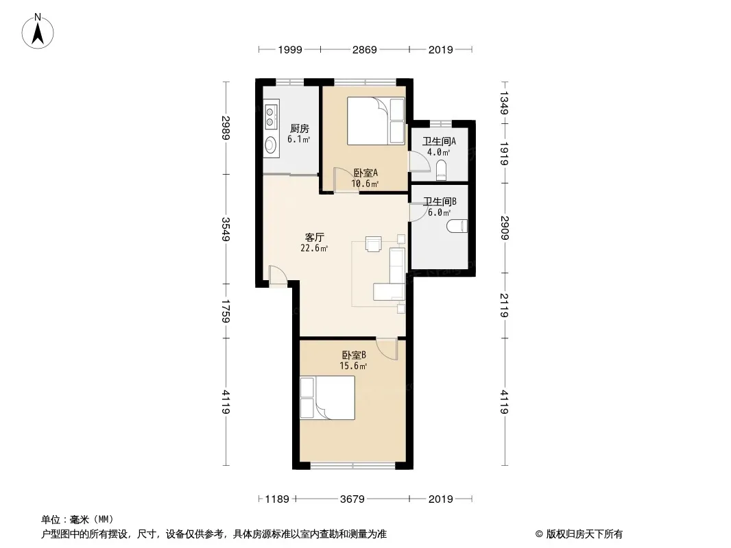 户型齐全,主打户型方正,明卫,明厨,双卧朝南,主卧朝南三居
