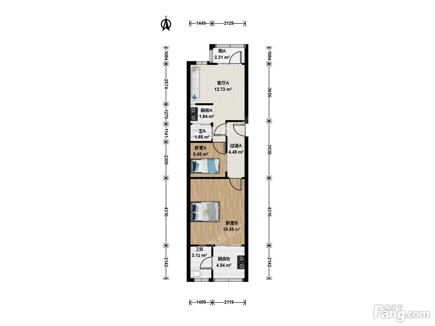 户型齐全,主打明厨,明卫,客厅朝南,全明格局二居