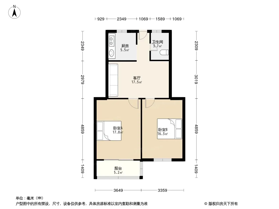 户型齐全,主打户型方正,明卫,明厨,客厅朝南二居