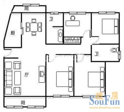 户型齐全,主打明卫,双卧朝南二居