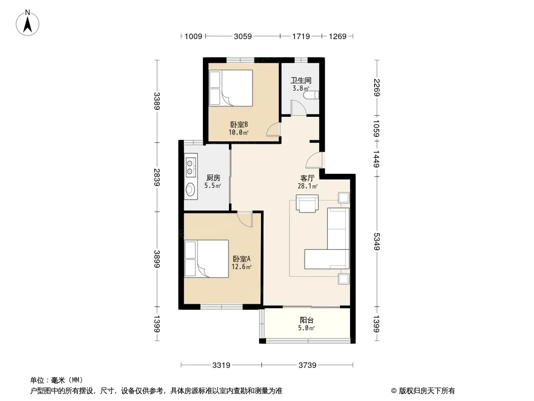 户型齐全,主打户型方正,明厨,明卫,双阳台,主卧朝南二居
