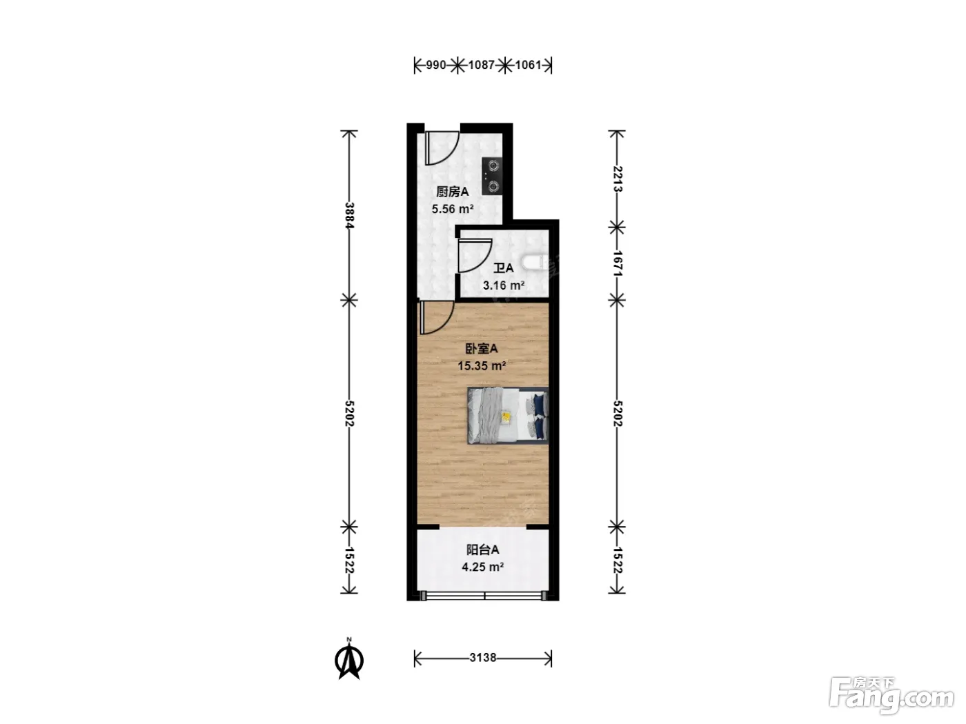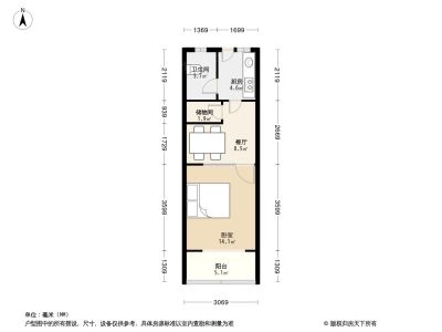 户型介绍:此房户型为1室0厅1卫,建筑面积为34.21平米,朝向为南。