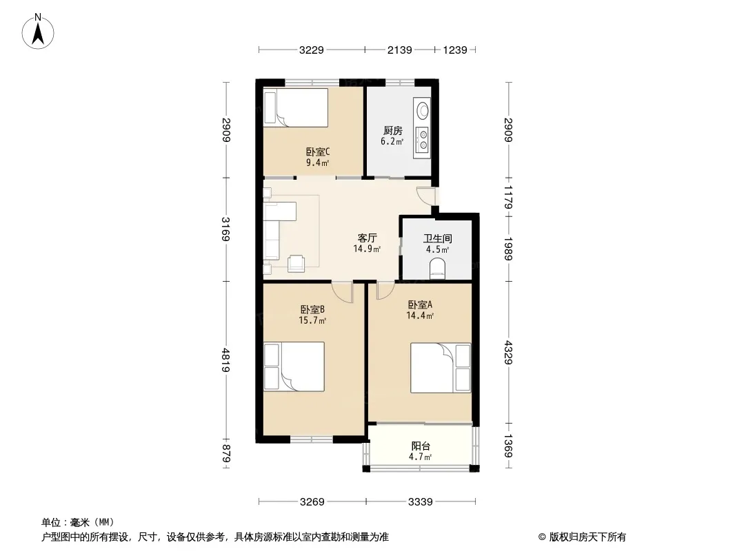 户型齐全,主打户型方正,明厨,主卧朝南三居