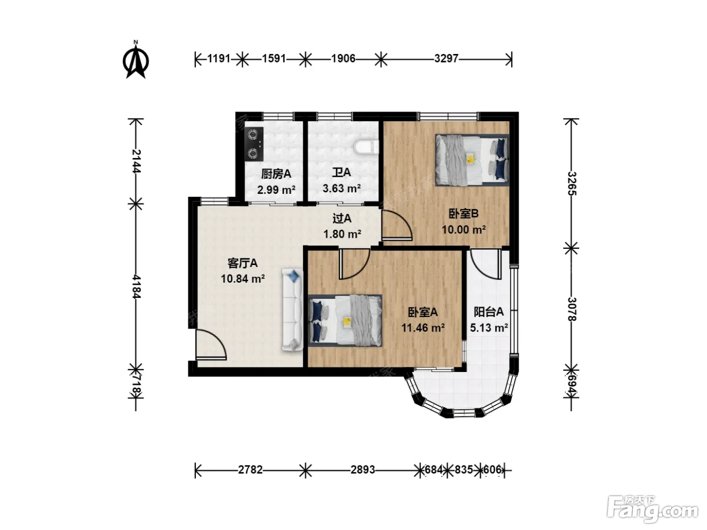 户型齐全,主打户型方正,明卫,明厨,双卧朝南,主卧朝南二居