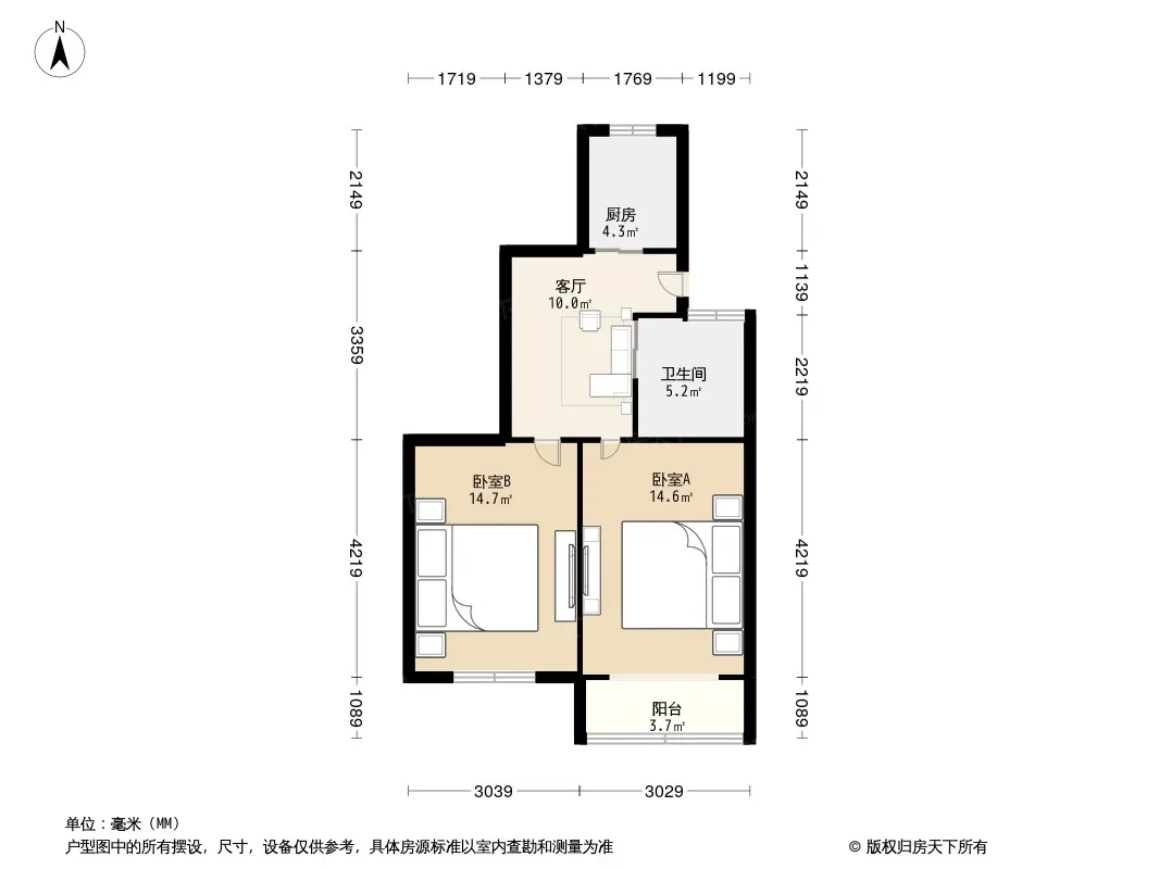 户型齐全,主打户型方正,明卫,明厨,主卧朝南二居
