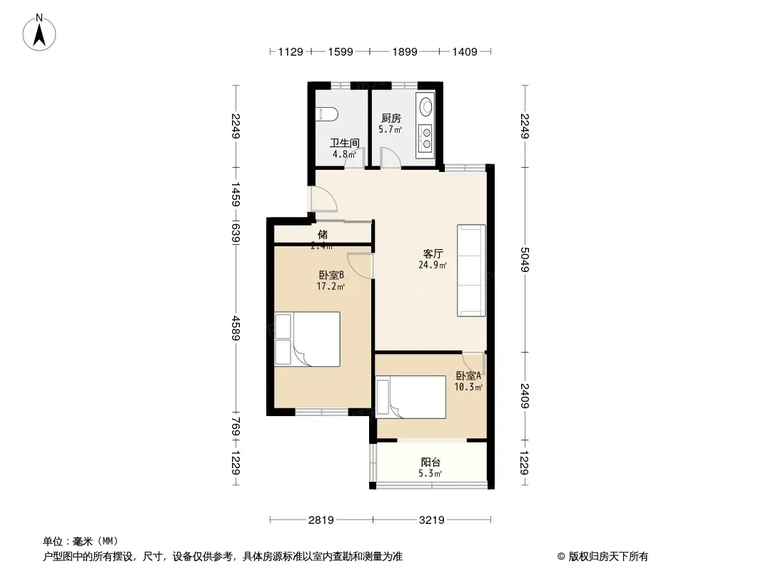 户型齐全,主打户型方正,明厨,明卫,主卧朝南二居