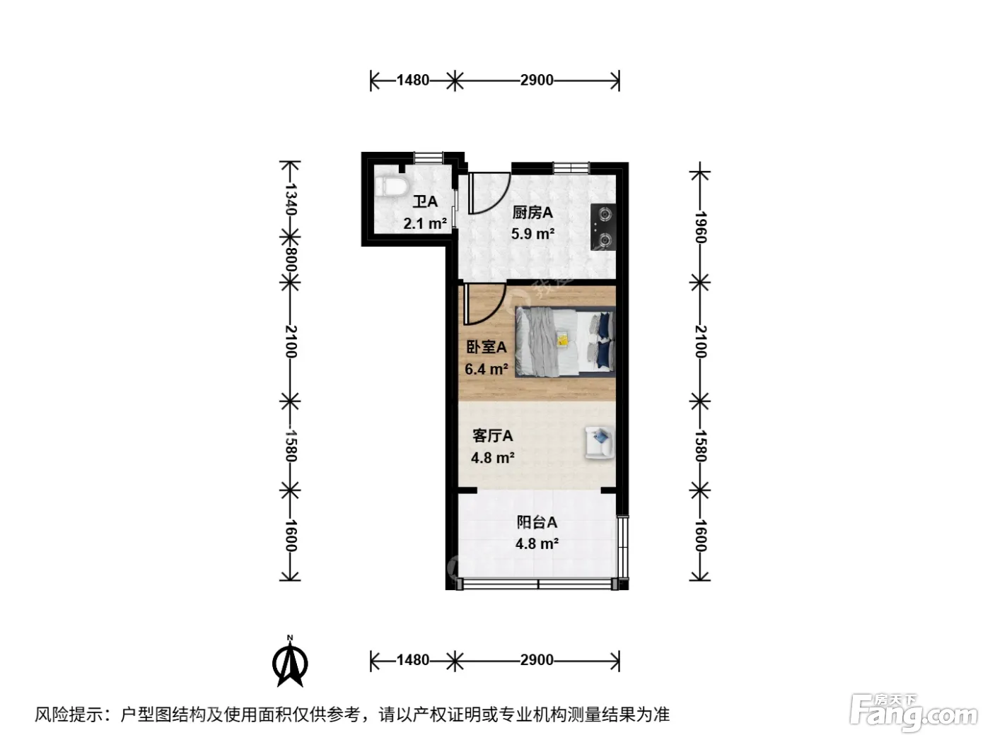 户型齐全,主打户型方正,明卫,明厨,主卧朝南一居