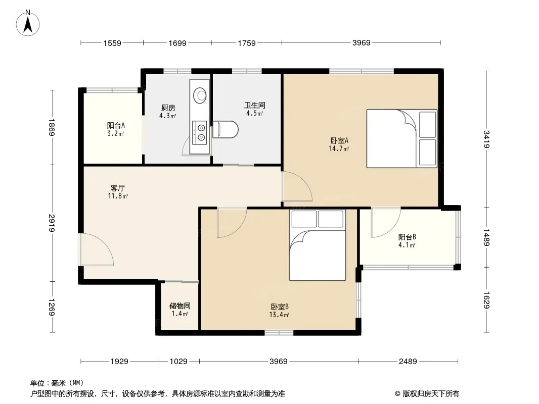 户型齐全,主打户型方正,明厨,明卫,双卧朝南,主卧朝南二居