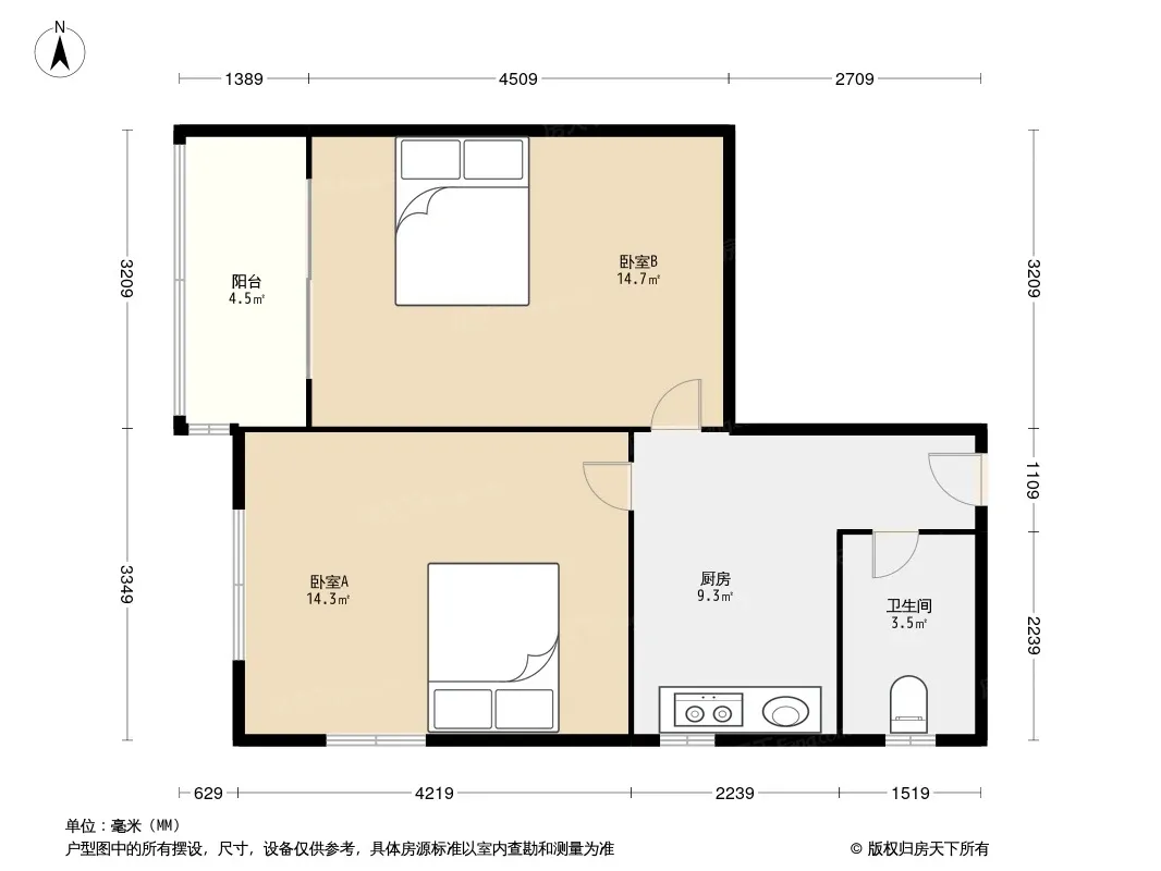 户型齐全,主打明卫,明厨,客厅朝南,主卧朝南二居