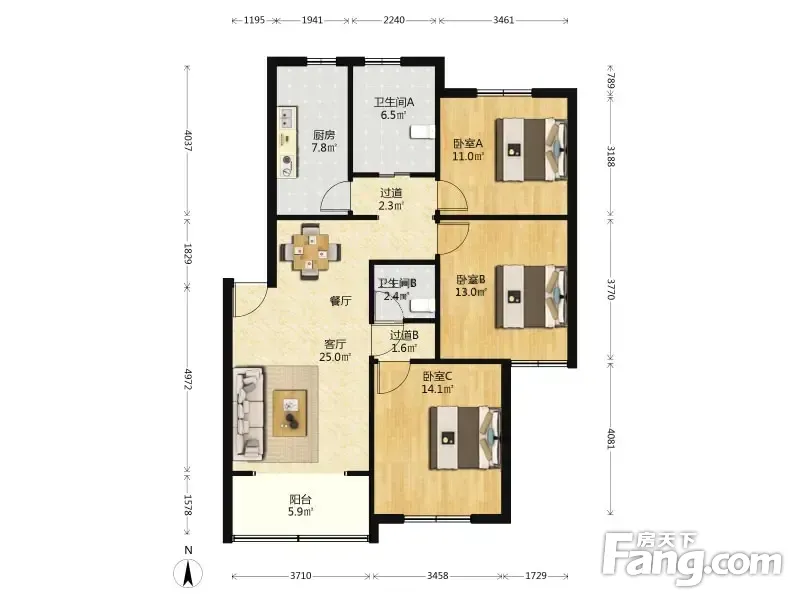 3室1厅2卫