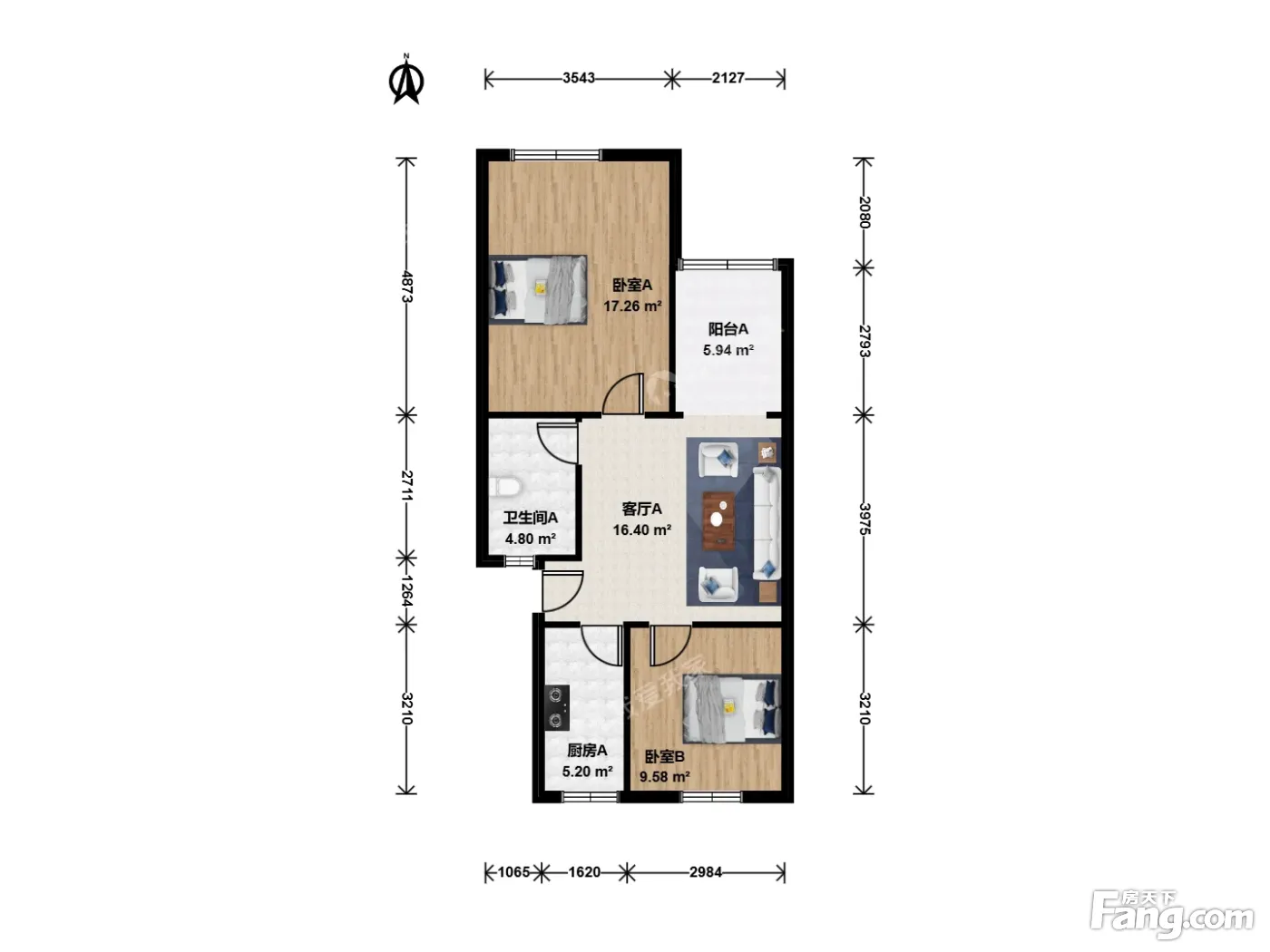 户型齐全,主打户型方正,明厨,明卫,客厅朝南,主卧朝南二居