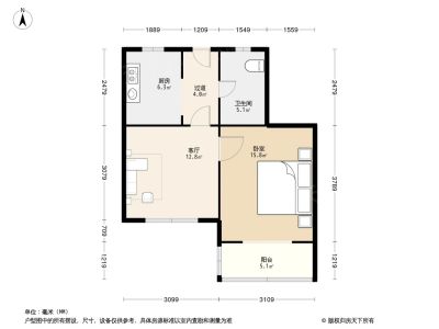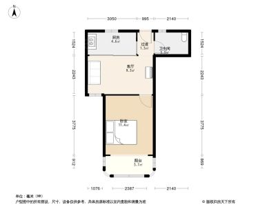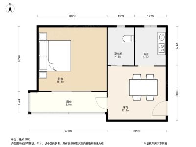 户型介绍:此房户型为1室1厅1卫,建筑面积为48.1平米,朝向为南。