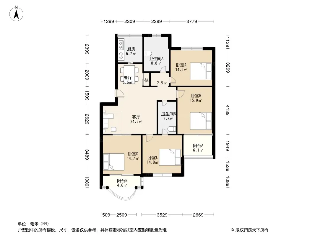 户型齐全,主打户型方正,明卫,双阳台,双卧朝南三居