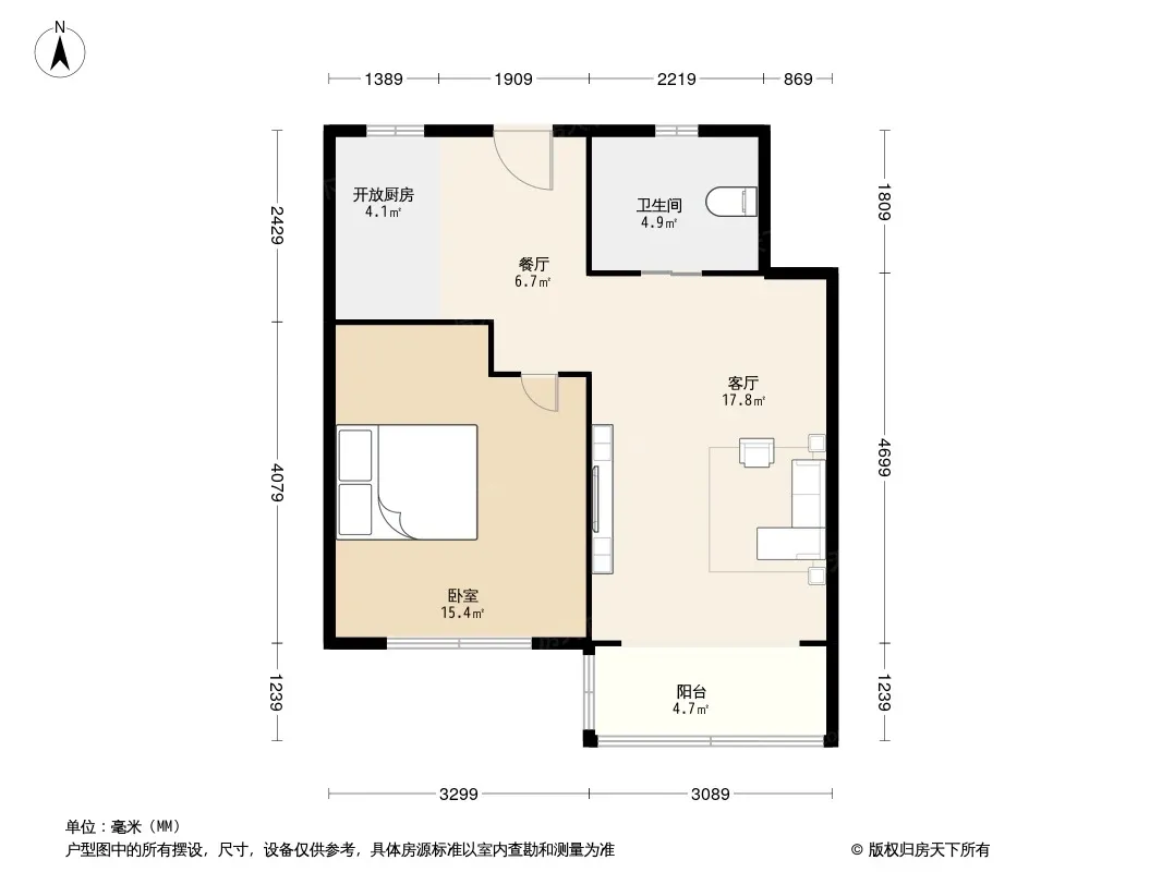 户型齐全,主打户型方正,明卫,明厨,客厅朝南一居
