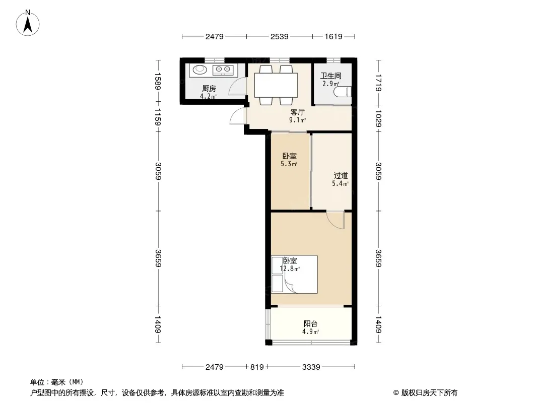 户型齐全,主打明厨,明卫,客厅朝南,全明格局二居