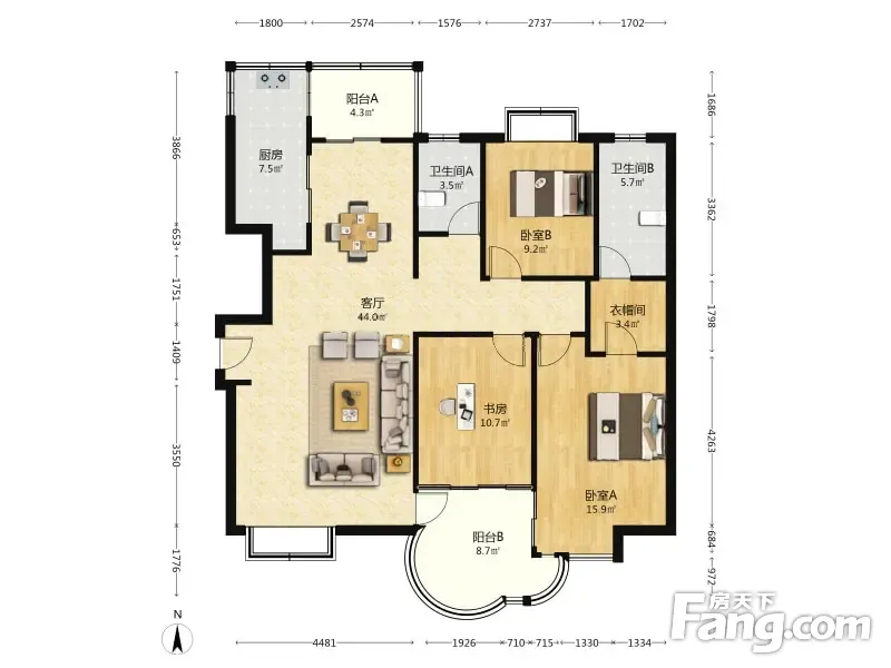 房屋拥有相对宽松的尺寸,布局通透,动静分离,设计豪华