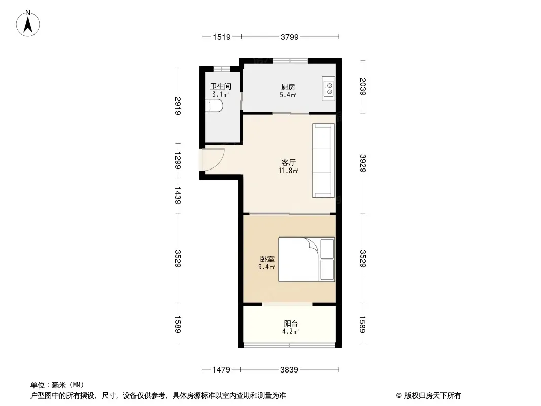 户型齐全,主打明卫,户型方正一居